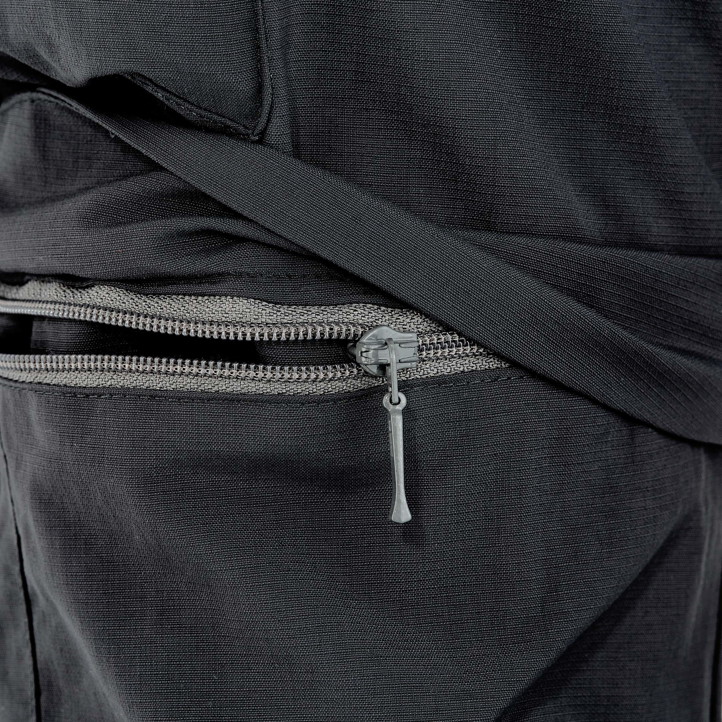 يمكن تحويل البنطلون إلى شورت، باستخدام السوستة الموجودة على الرجل، لارتدائه في أي طقس وفي جميع رحلات المشي لمسافات طويلة. يتميز بشريط تثبيت في الجزء السفلي من أرجل البنطلون.
