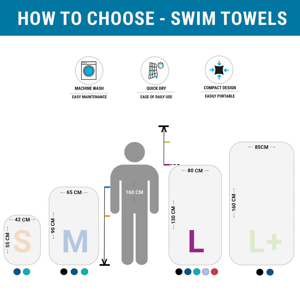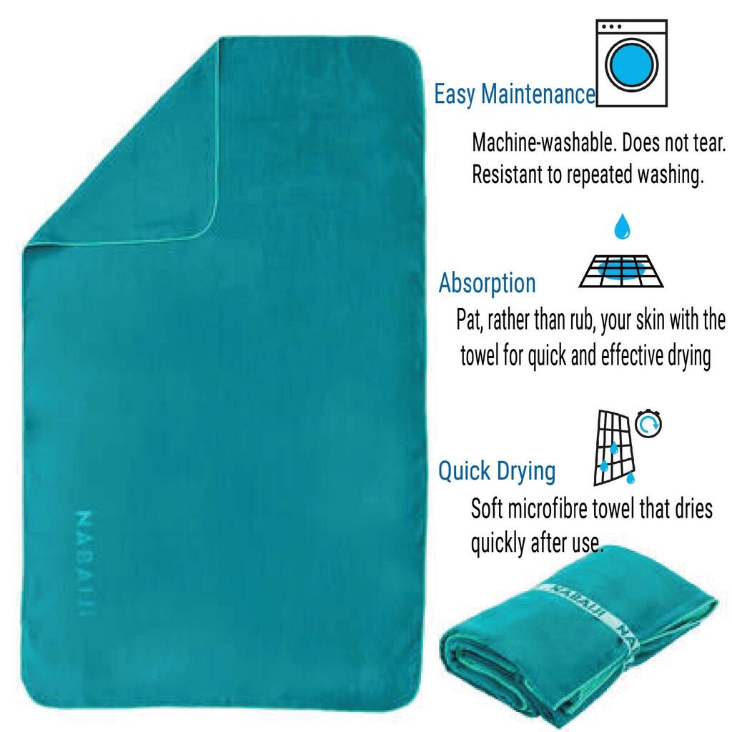 تتميز فوطة الميكروفيبر 80 × 130 سم مقاس L الكبيرة بقدرتها العالية على الامتصاص وحجمها الصغير، مما يجعلها مثالية للسفر بخفة وراحة، سواء إلى حمام السباحة أو أي مكان آخر.