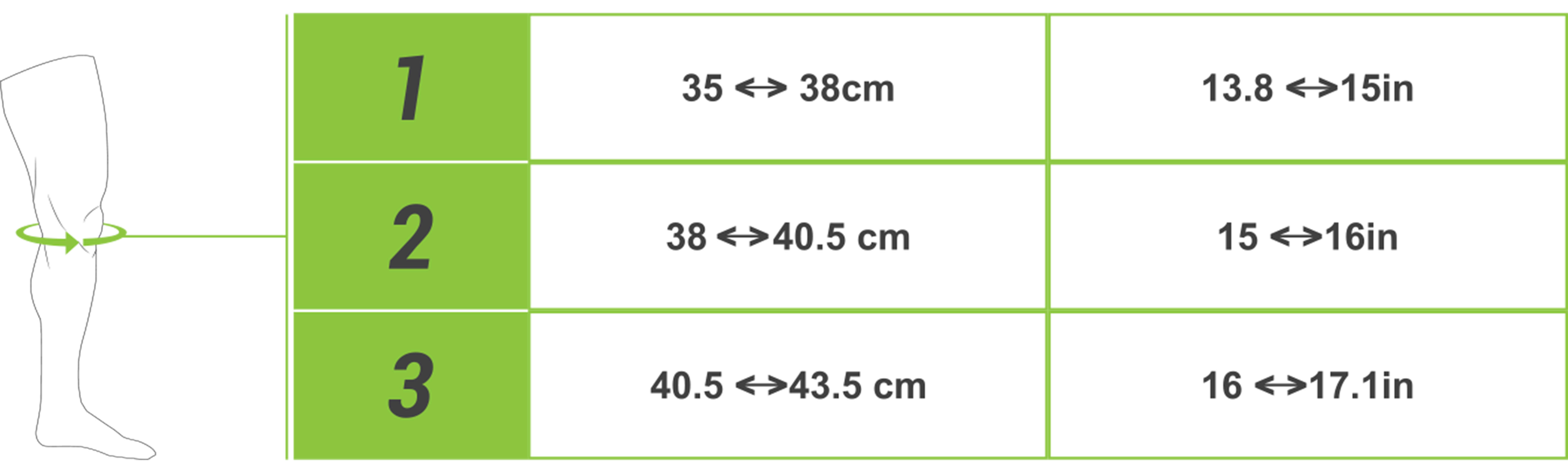 لتزيد من كثافة التمارين اليومية، من المهم أن تختار دعامة الركبة بمقاس مناسب. لاختيار المقاس المناسب، ما عليك سوى قياس دوران الركبة لتحديد المقاس الأمثل (انظر جزء "الوصف" أعلاه).