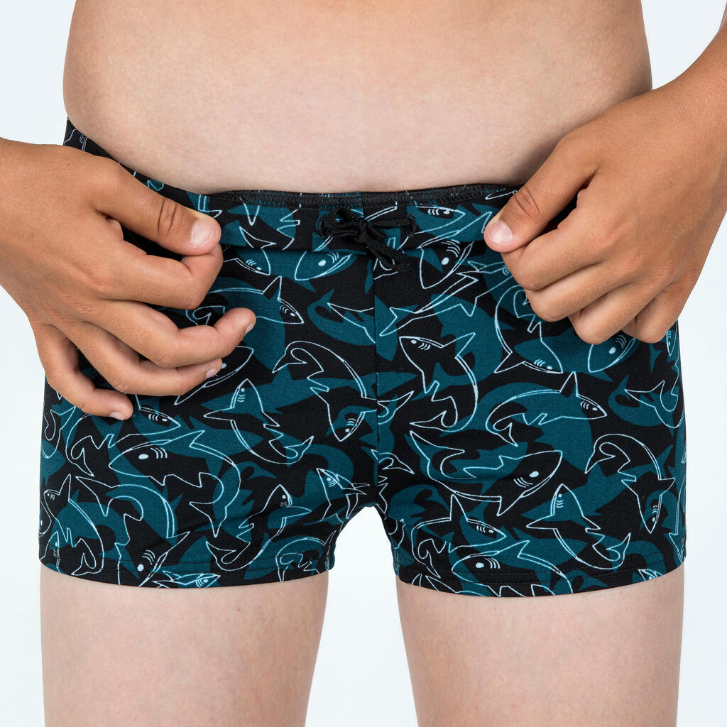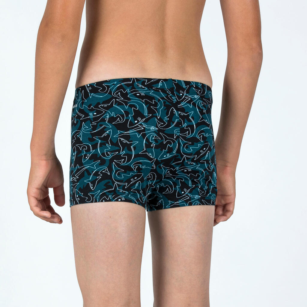 شورت سباحة للأولاد - أسود/أزرق بطبعة سمك القرش