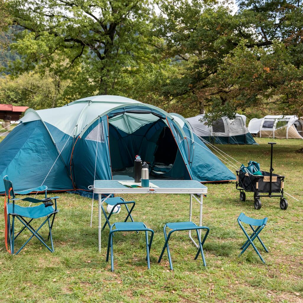 صمم فريقنا خيمة Arpenaz 4.2 المدعومة بأعمدة وتتسع لأربعة أشخاص تحتوي على غرفتين نوم منفصلتين ومساحة معيشة واسعة.