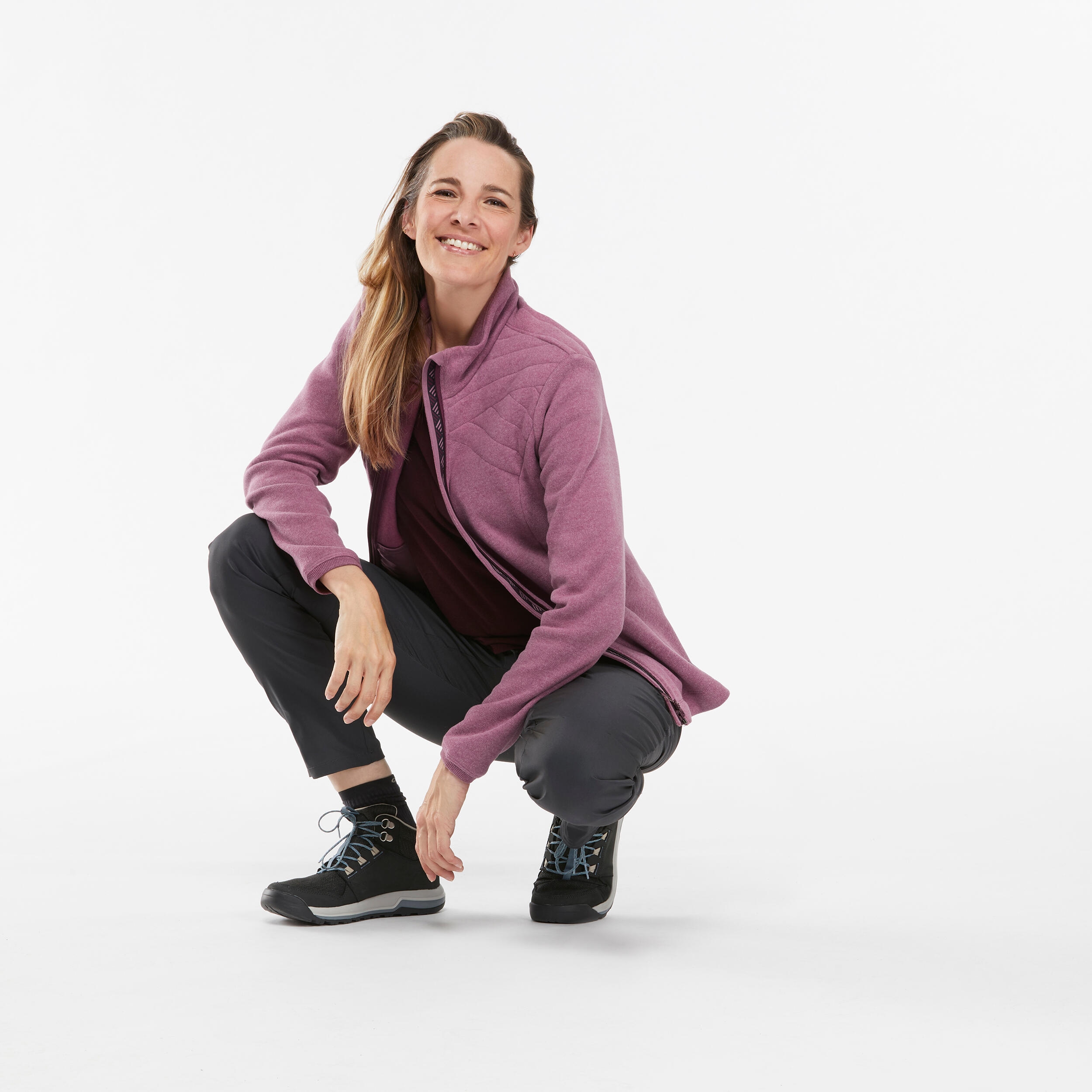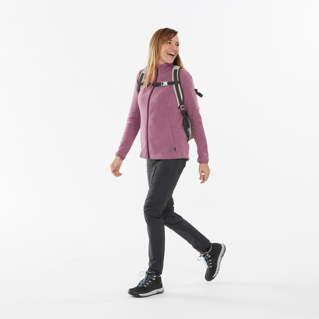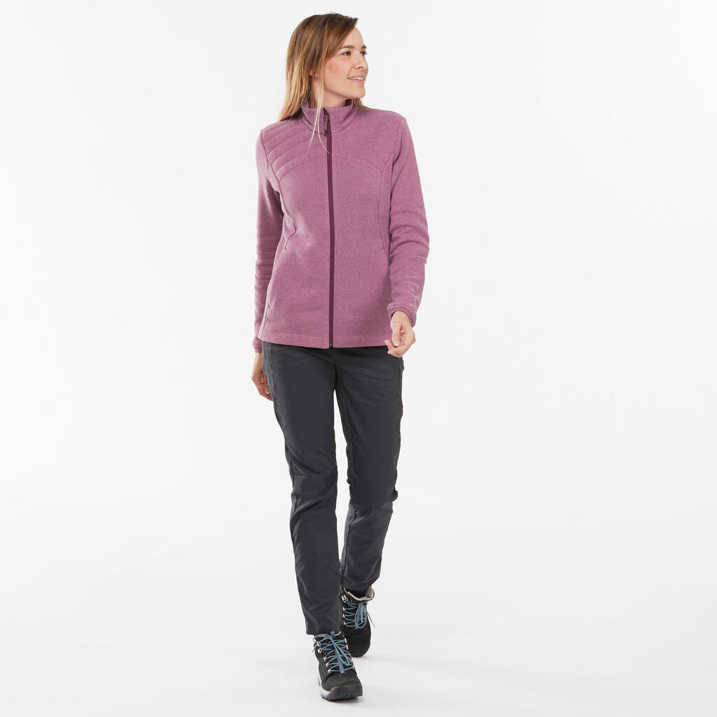 جيليه NH150 للتنزه لمسافات طويلة للنساء مثالي لارتدائه أثناء المشي في الجو البارد. مريح وثقيل ويمكنك أخذه معك في أي مكان في الشنطة.