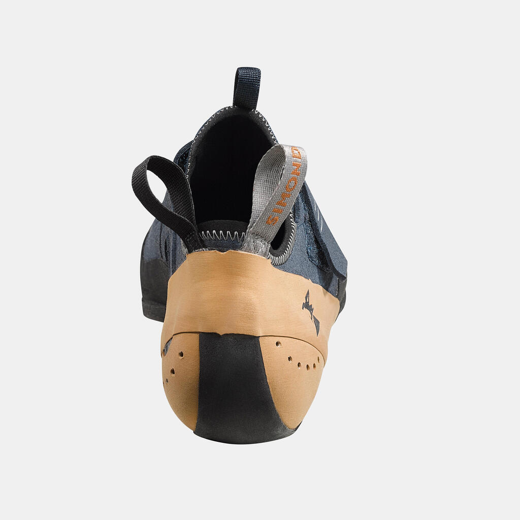 يأتي الحذاء بتصميم مقوس، غير متماثل، مع شد ملحوظ عند الكعب (بمستوى متوسط). يمنحك هذا التصميم دقة وقوة كبيرة أثناء الحركة، ويعزز قدرتك على التفاعل مع النقاط الدقيقة في مسارات التسلق.