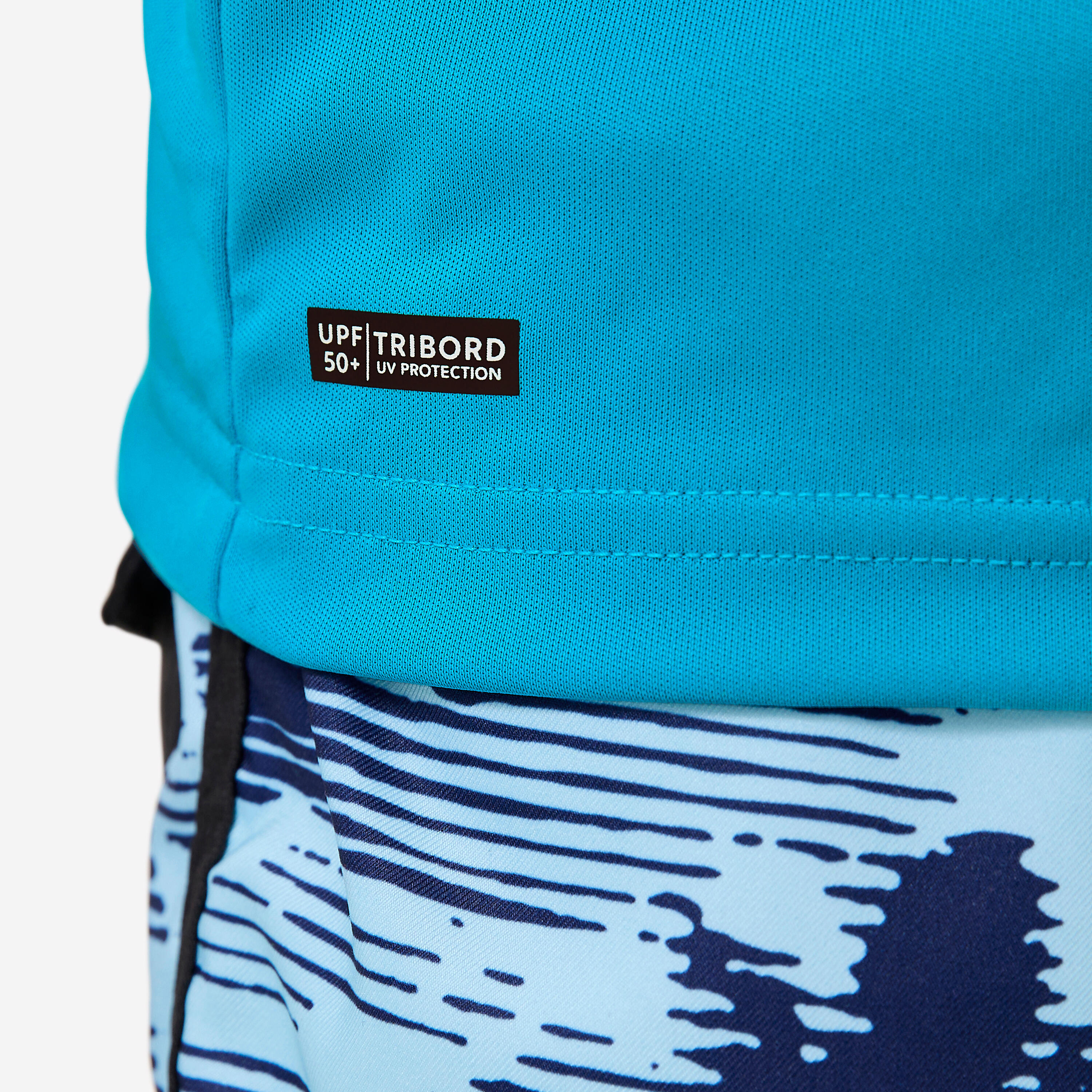 يمتلك تي شيرت الوقاية من الأشعة فوق البنفسجية حلقة في الأمام لربط حبل شورت السباحة لمنع التي شيرت من أن يرتفع أثناء التزلج. يوصى بهذا الحل للتمارين التي تصل إلى ساعة. ولأكثر من ساعة، فإننا نوصي باختيار التي شيرت الواقي من الأشعة فوق البنفسجية 500، حيث يتميز طرف التي شيرت بثبات أفضل على الأرداف. ارتداء التي شيرت غير المناسب يمكن أن يسبب الحساسية أسفل البطن.