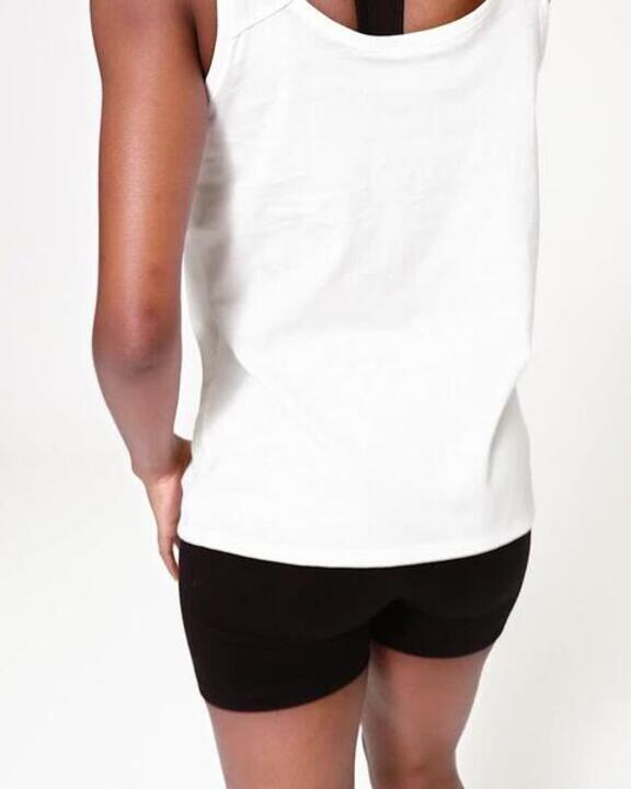 صُنع من القطن المعاد تدويره بنسبة 30% والصديق للبيئة، وصُمم بدون أكمام وبرقبة مفتوحة وبمقاس 150 جم/م²، مما يجعله قطعة أساسية في خزانة الملابس يمكنكِ ارتداؤها لممارسة تمارين اللياقة البدنية أو للاستخدام اليومي.