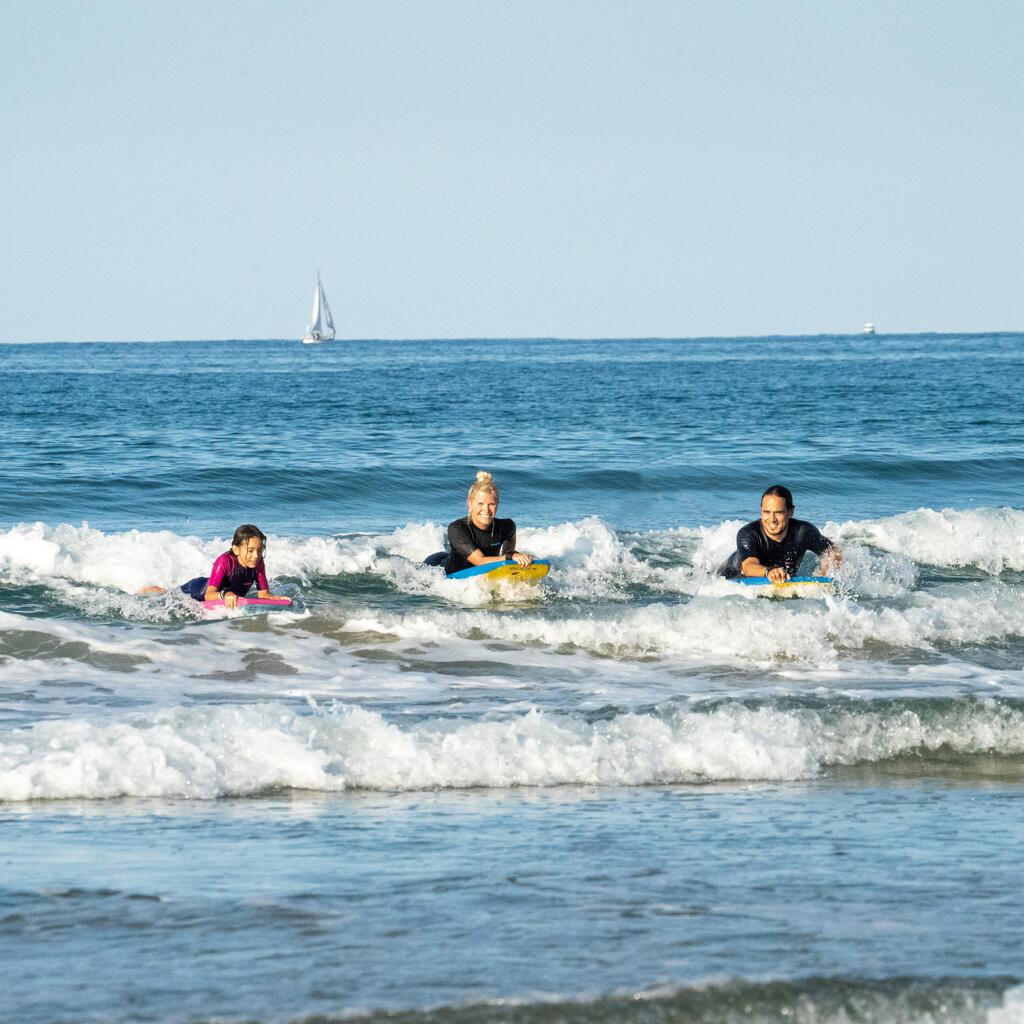 - مناسب للناشئين: عند المنتصف، لا توجد زعانف للأمواج الصغيرة أقل من 50 سم، والتحرك من خلال دفع القدم على الأرض وركوب الأمواج إلى الشاطئ. مناسب لتجربة ركوب الأمواج الأولى.