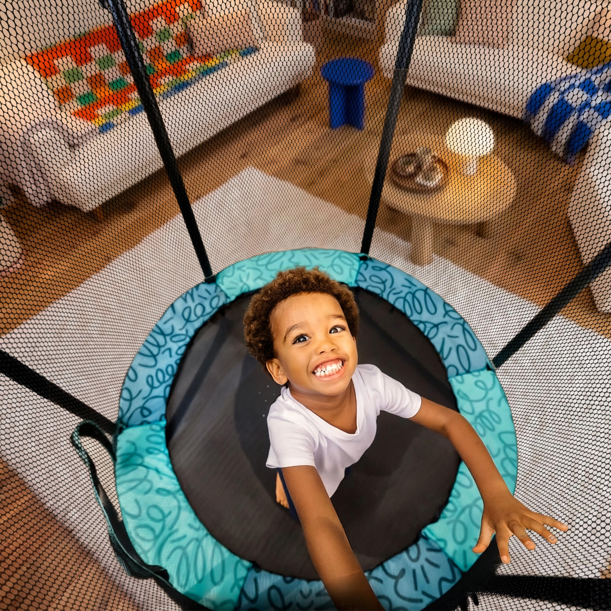 تم تصميم هذا الترامبولين للاستخدام داخل المنزل مع مراعاة راحتك وراحة أطفالك، حيث خصصت فرق التصميم لدينا جهدًا خاصًا للحد من الضوضاء الناتجة عنه. يأتي الارتداد من 36 حزامًا مطاطيًا لا يحدث صوتًا عند القفز، والأرجل مزودة ببطانات تمتص الضوضاء. لكن بالنسبة لضحك أطفالك عند اللعب على الترامبولين، فهذه ليست مسؤوليتنا 😉.
