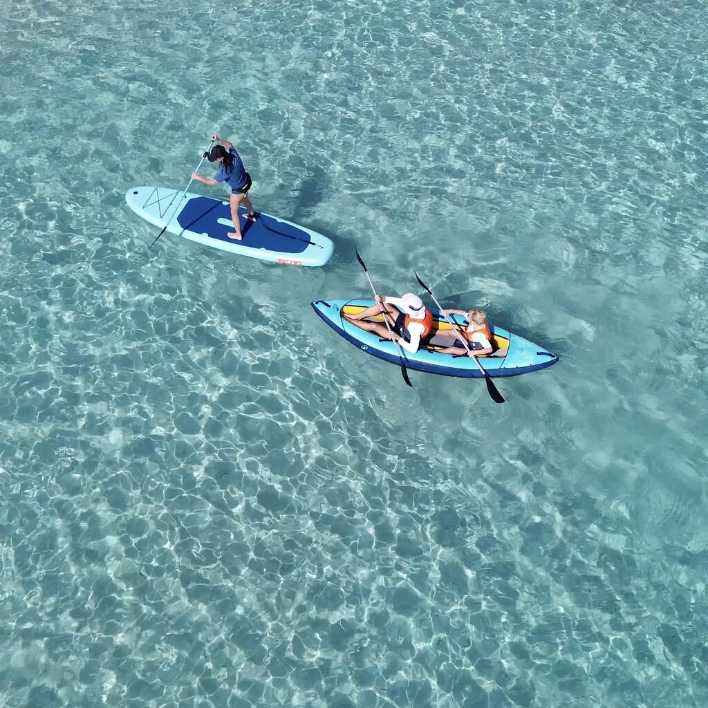 هل أنت مستعد للاكتشاف؟ يأتي مجداف التجديف وقوفًا القابل للنفخ في مجموعة كاملة (لوح، ومجداف، ومنفاخ) توفر لك الاستقرار والمرح أثناء الرحلات ولحظات الاسترخاء على المياه الهادئة