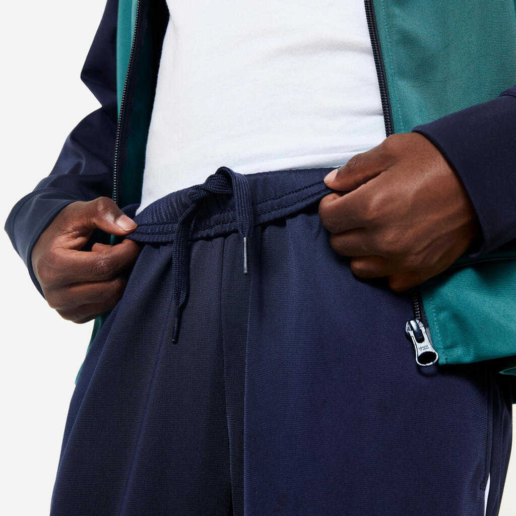 بسيط وعصري في آن واحد، يتكون الطقم الرياضي للأطفال من بنطلون وجاكت بسوستة. أساسي لممارسة الرياضة المدرسية