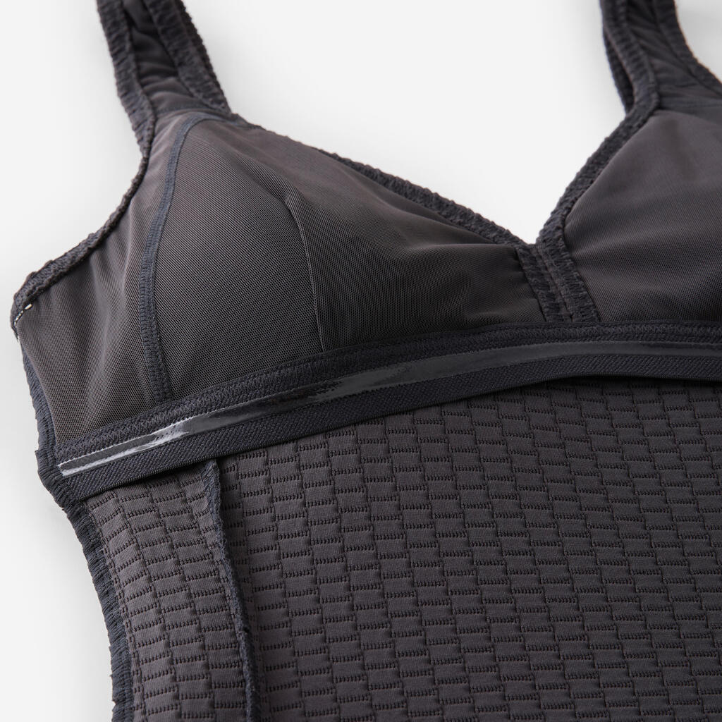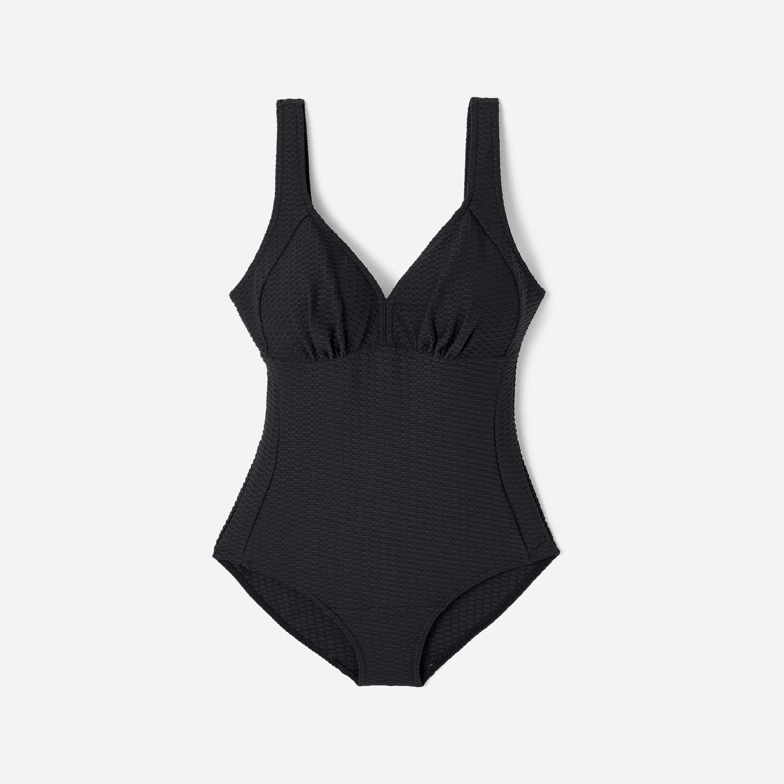 مايوه سباحة قطعة واحدة من نسيج الوافل للسيدات - أسود
