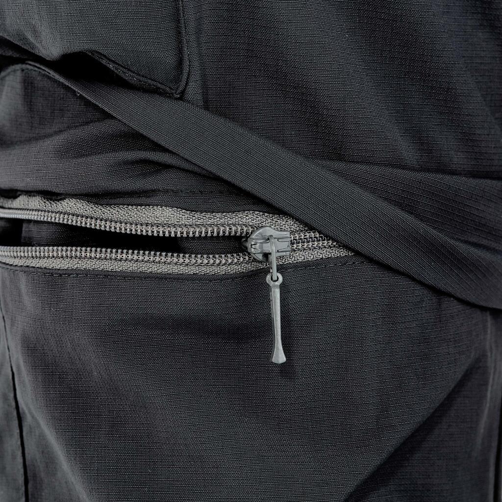 Trousers can be converted into shorts, using the zips on the legs, for wearing in any weather and on all hikes. Fastening tab on the lower pant legs.