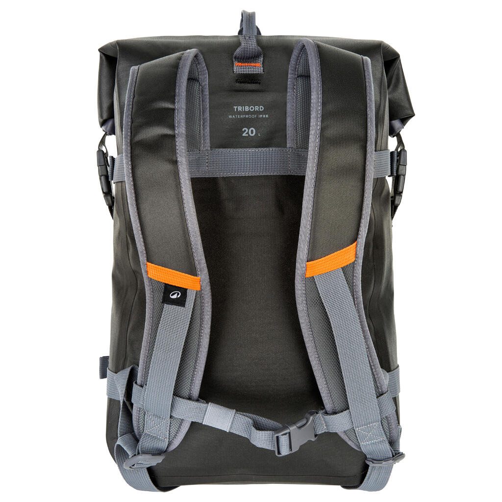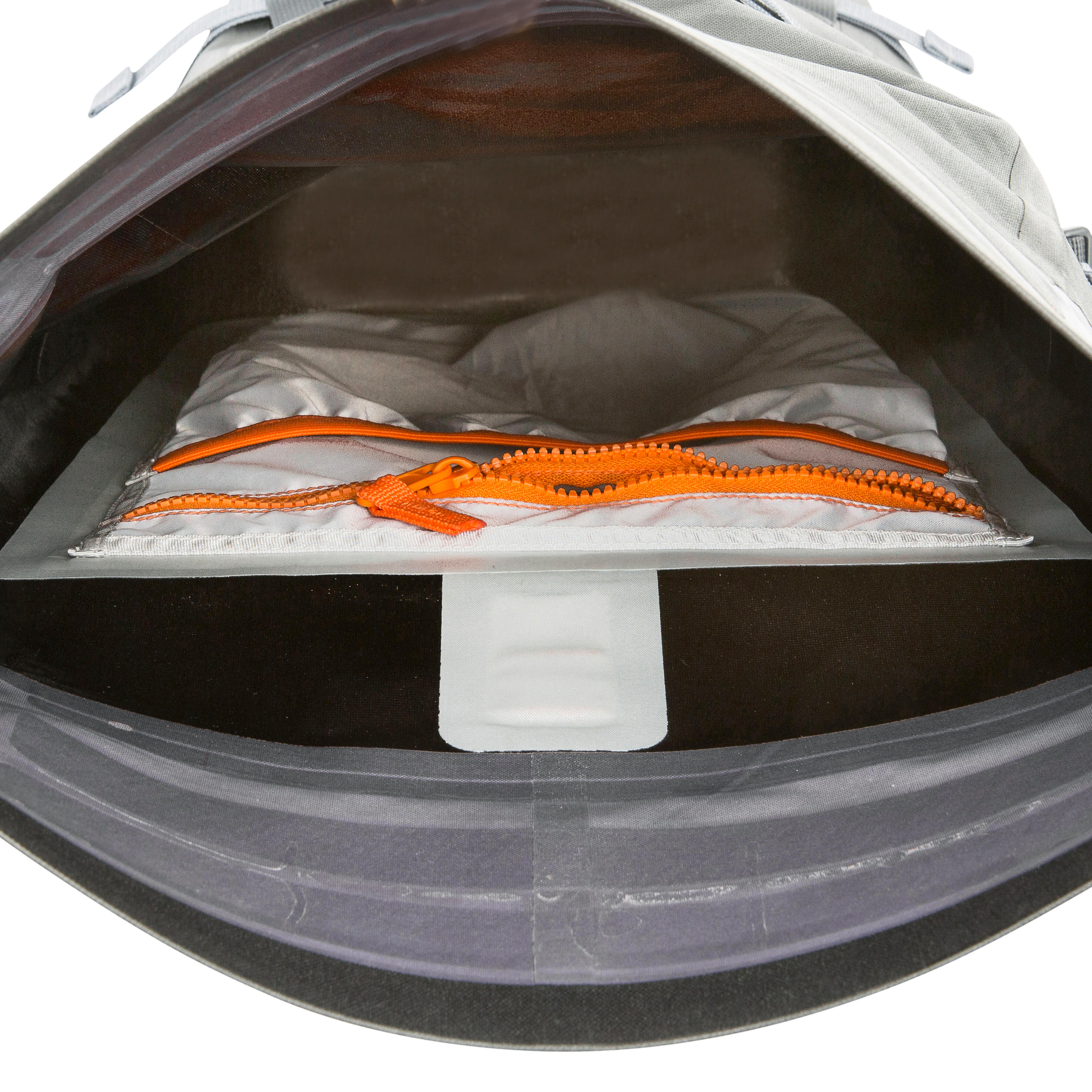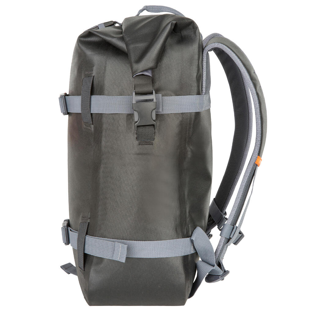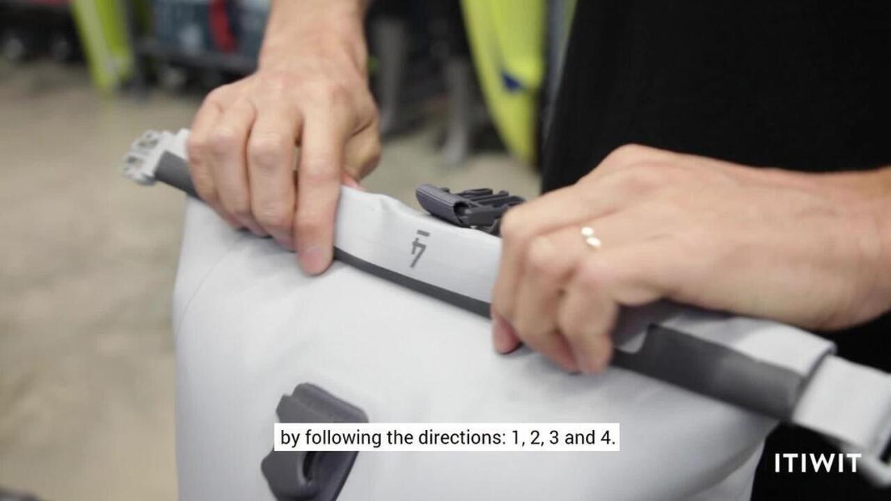 The 2 compression straps on the body of the bag can be used to attach the backpack to a SUP or a kayak equipped with fastening loops, enabling you to carry your belongings into the water and protect them.