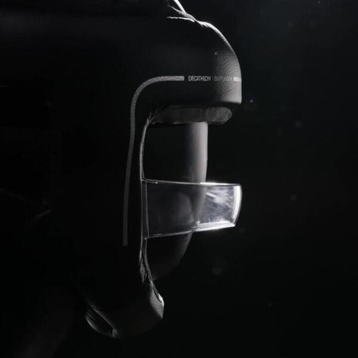 To offer complete protection while ensuring an excellent field of vision and good breathability, we gave this helmet a clear bar. Tested in the lab under extreme conditions, it is designed to withstand very powerful impacts. It is thick enough to prevent your opponent's fist from reaching you, but thin enough so you can breathe normally. It is transparent so that you can enjoy the same field of vision as with a traditional boxing helmet