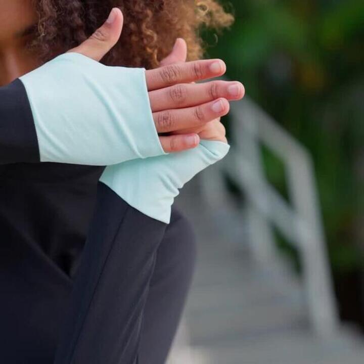 With its highly chlorine-resistant material, wrist cuffs that stop the sleeves from riding up and built-in bra, this top lets you swim comfortably.