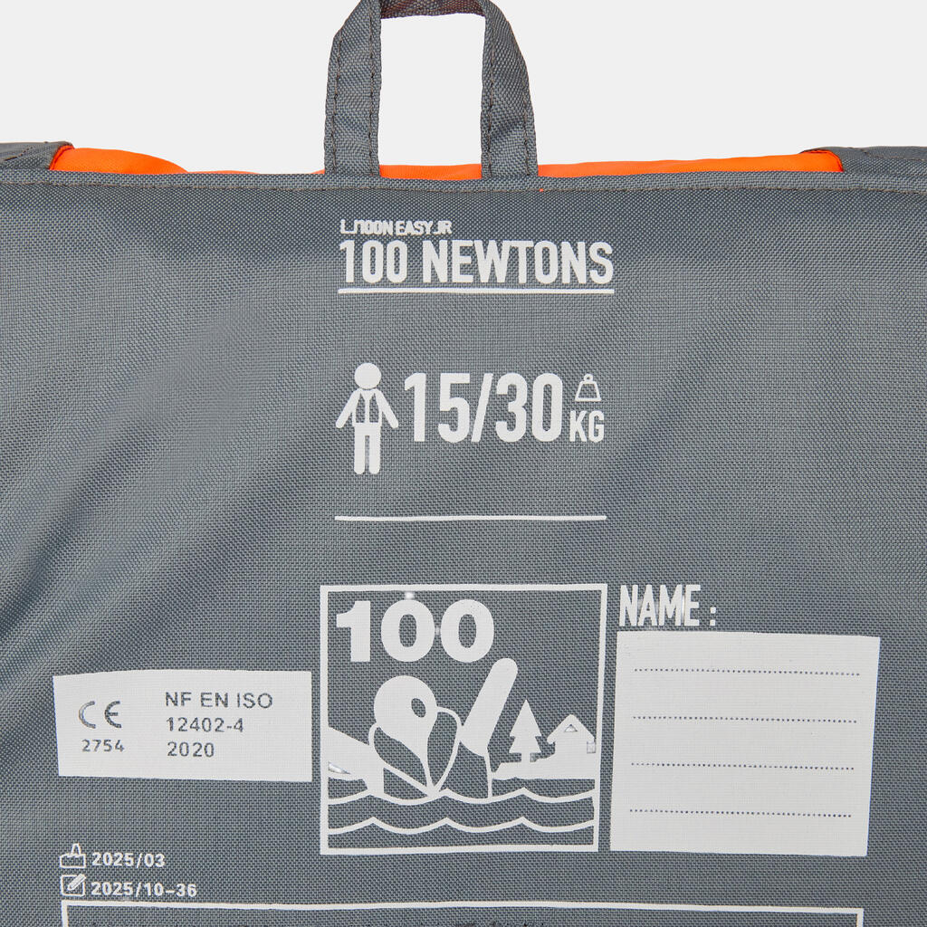Kids’ 100N life jacket LJ100N Easy JR 15-40 kg - orange/grey