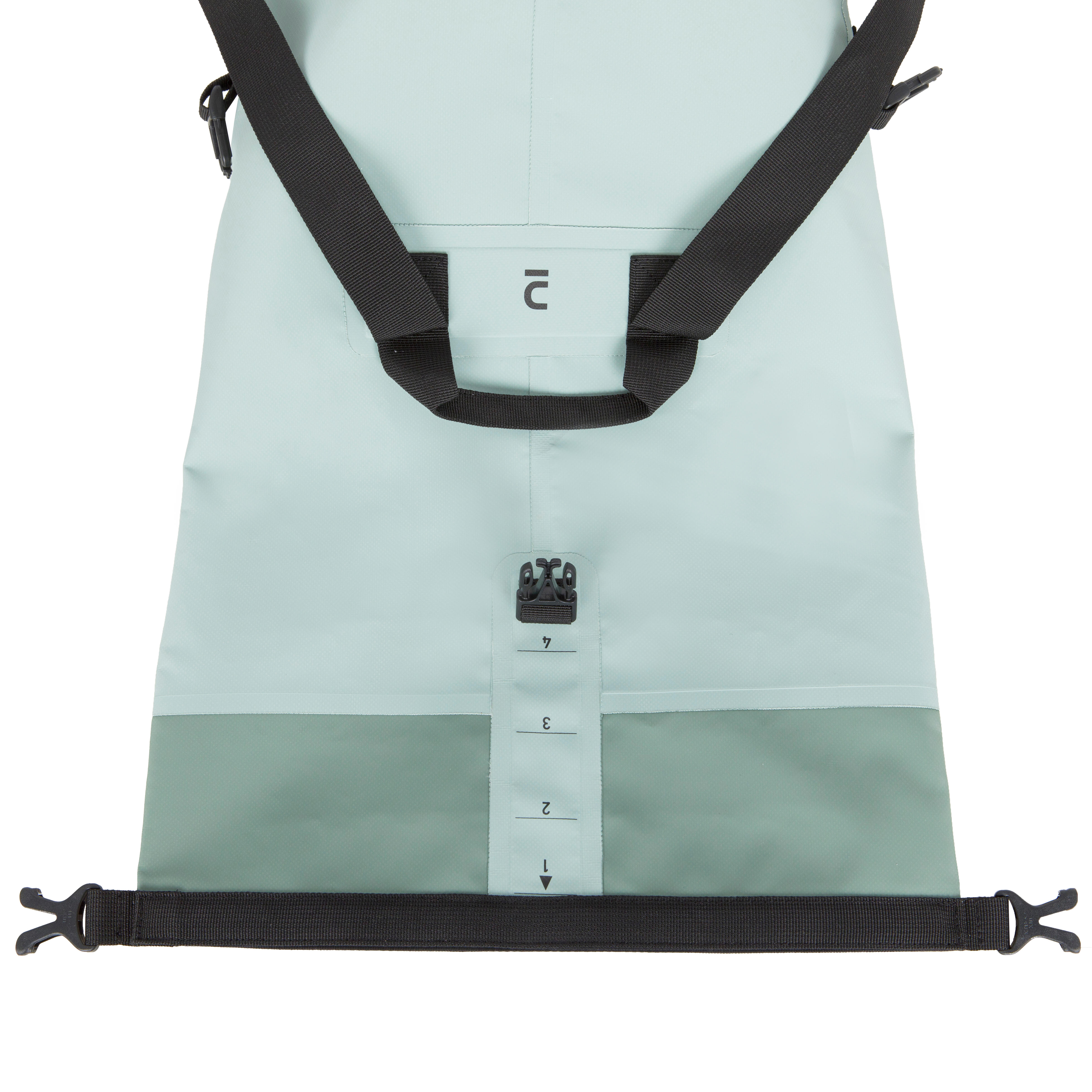 1/ Carefully roll down the top of the bag 5 times, by tightening the folds across the thickness of the strap.