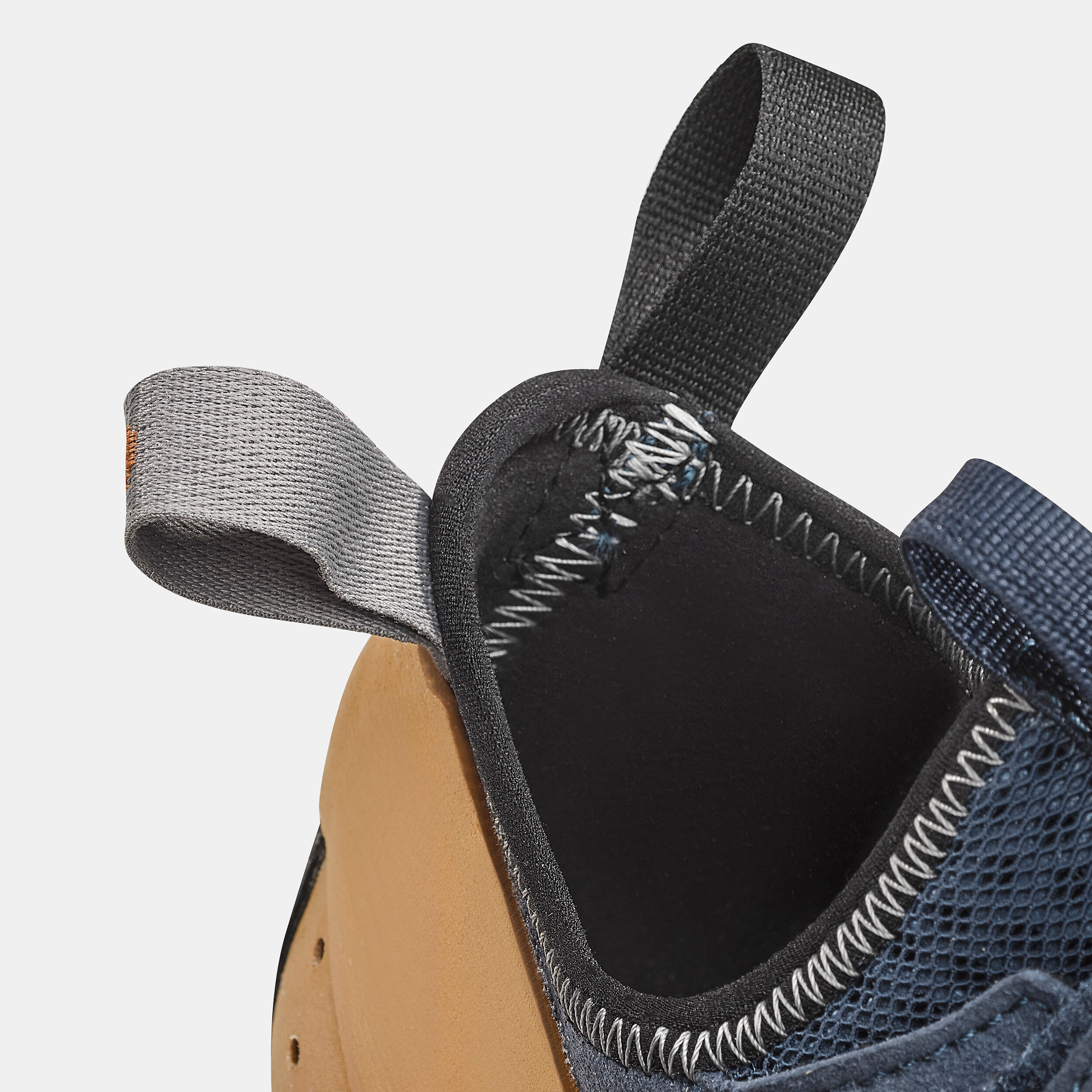 If you are an advanced climber, we suggest you take the time to try different sizes (1 to 2 sizes below normal) to find the best compromise between comfort and compression for more force when pushing off.