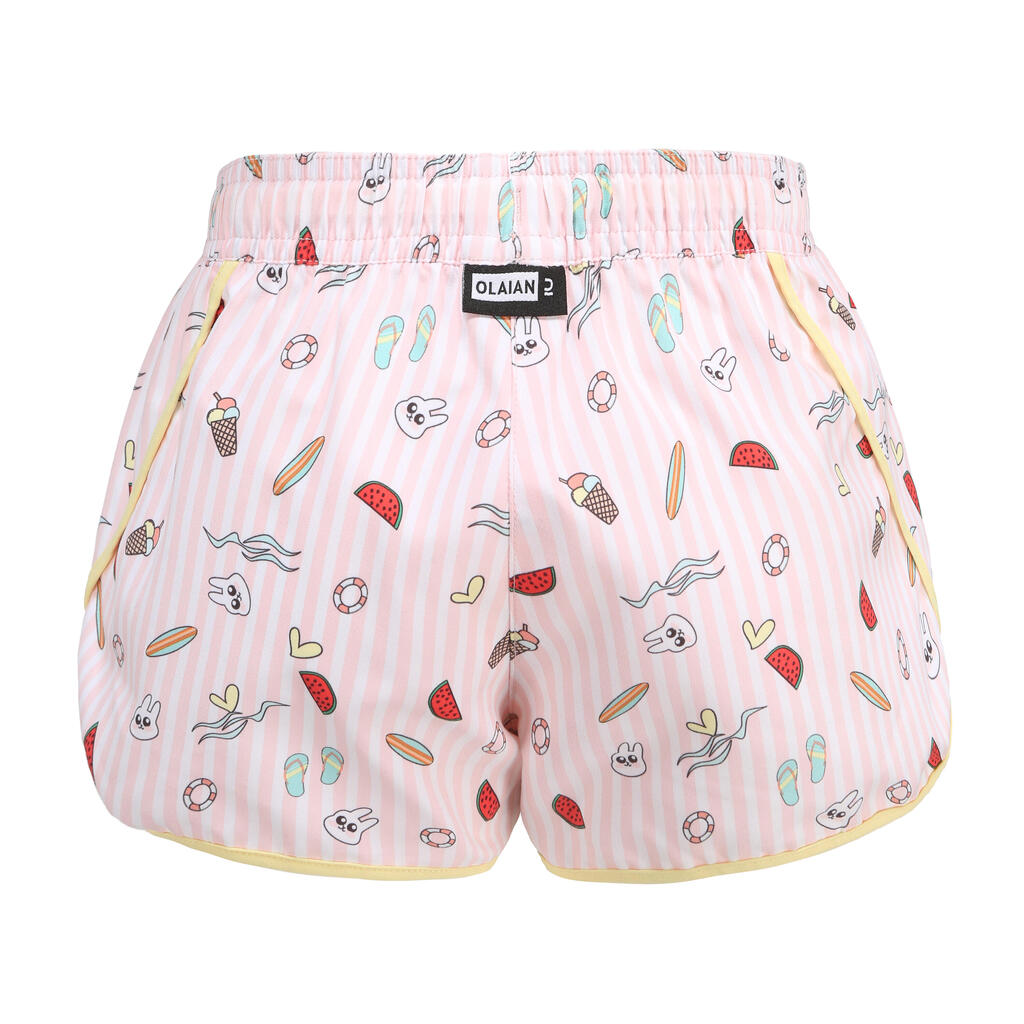 These girl's swim shorts can be worn over a swimsuit to stay covered and comfortable while enjoying watersports. Elasticated waistband.