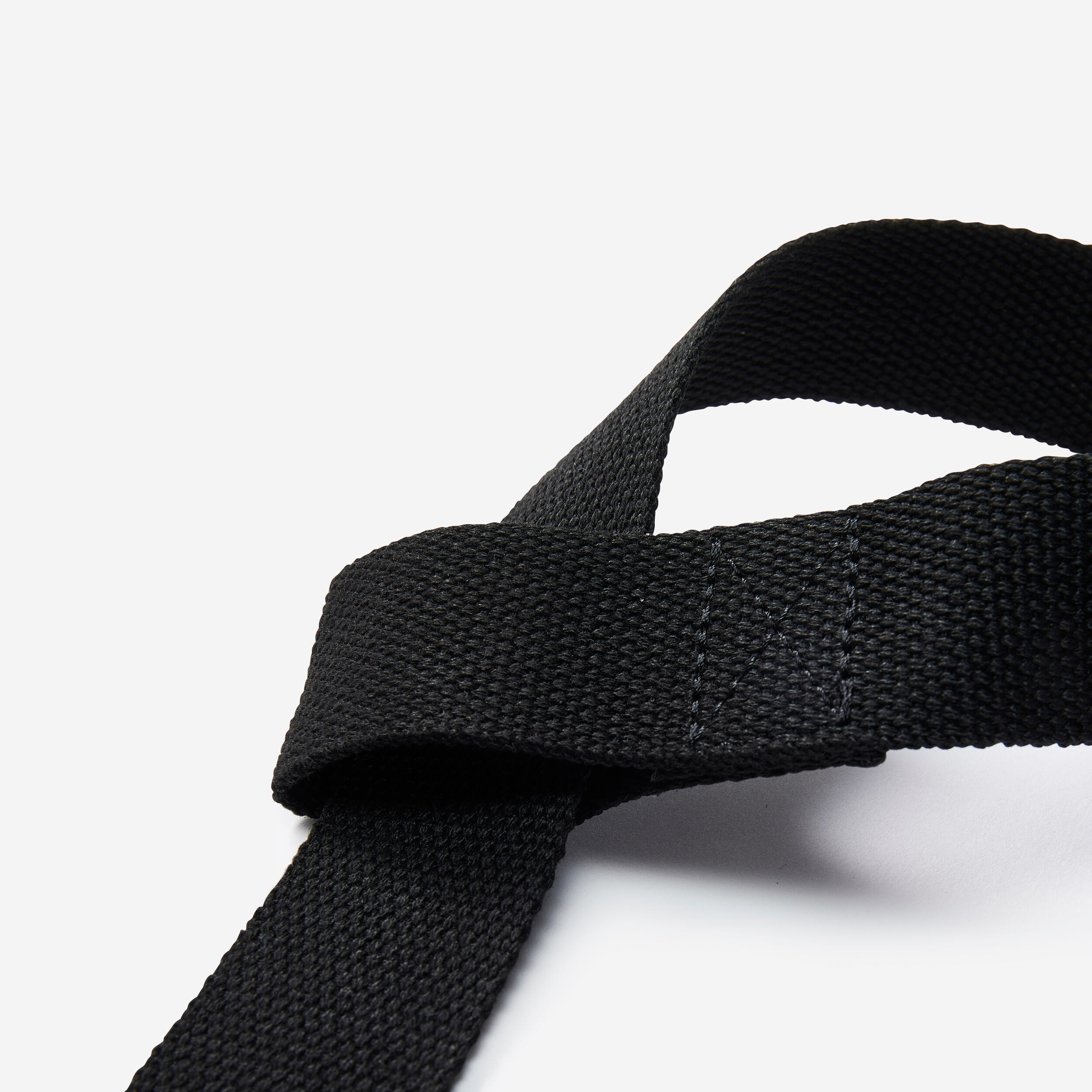 Putting on the straps is easy: - Wrap the first strap around your wrist and thread it through the buckle. - Make sure the free end is in the palm of your hand. - Wrap the strap around the bar, starting under the bar and pulling it towards you. - Make sure the strap isn't wrapped around too thickly and that your hand still touches the bar. - Repeat with the second strap.