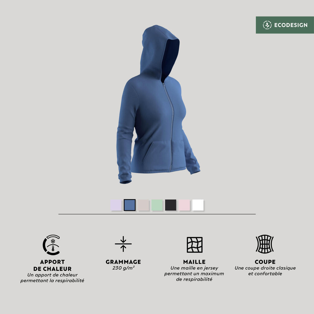 Women's Zip-Up Fitness Sweatshirt 100 - Indigo Blue