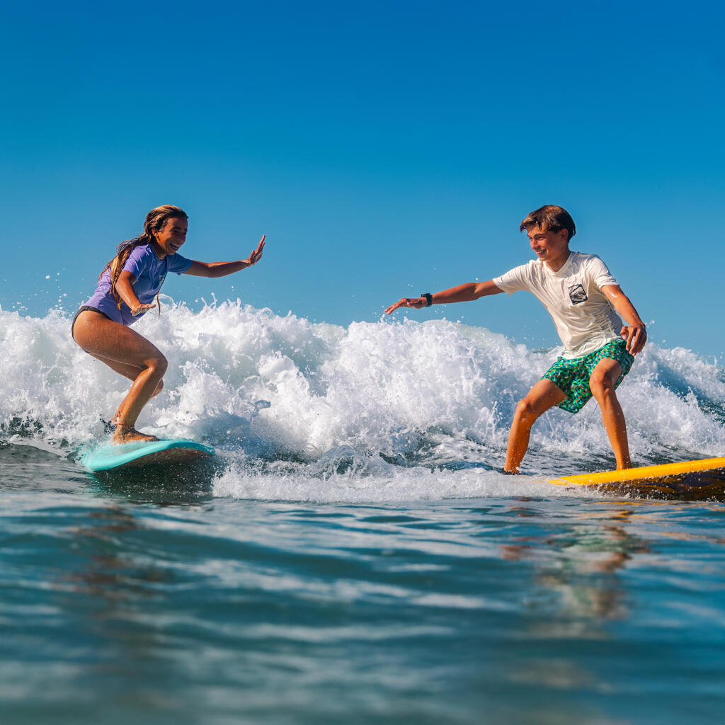 This UV protection t-shirt reduces friction with the surfboard or bodyboard. The loose cut of the t-shirt makes it easier to put on and is more comfortable when dry. Choose the fitted cut of the 100 or 500 top if you prefer comfort when wet or wear it under a wetsuit. Limitation of irritation has been proven for sessions of 1 hour. If you plan to surf for more than 1 h, the 500 UV top will be a more suitable choice thanks to the seamless panels under the arms.