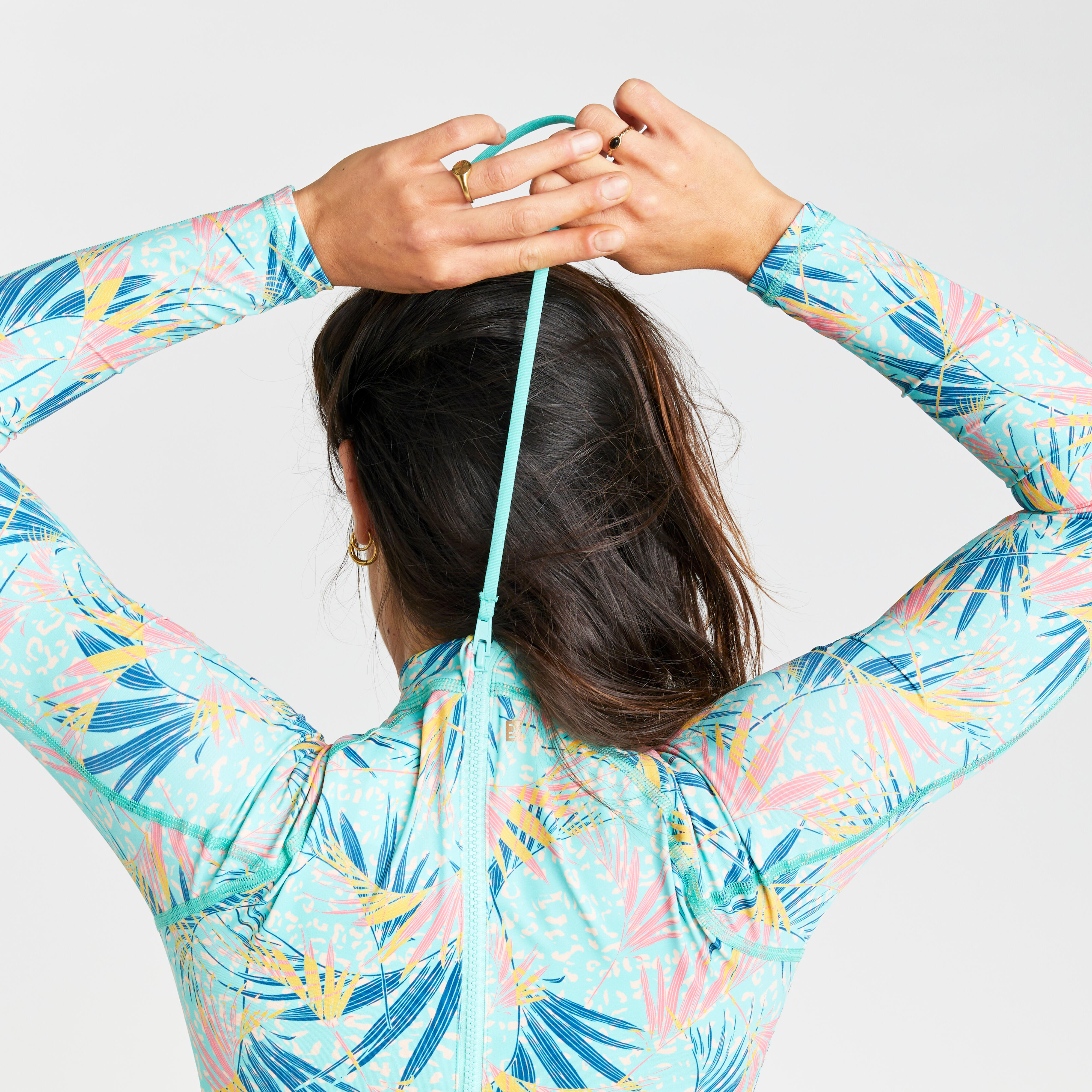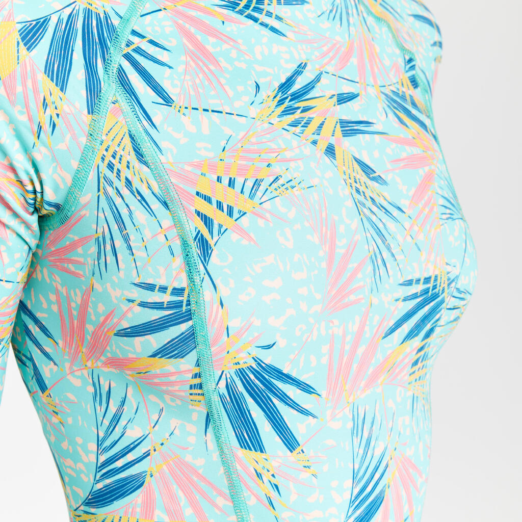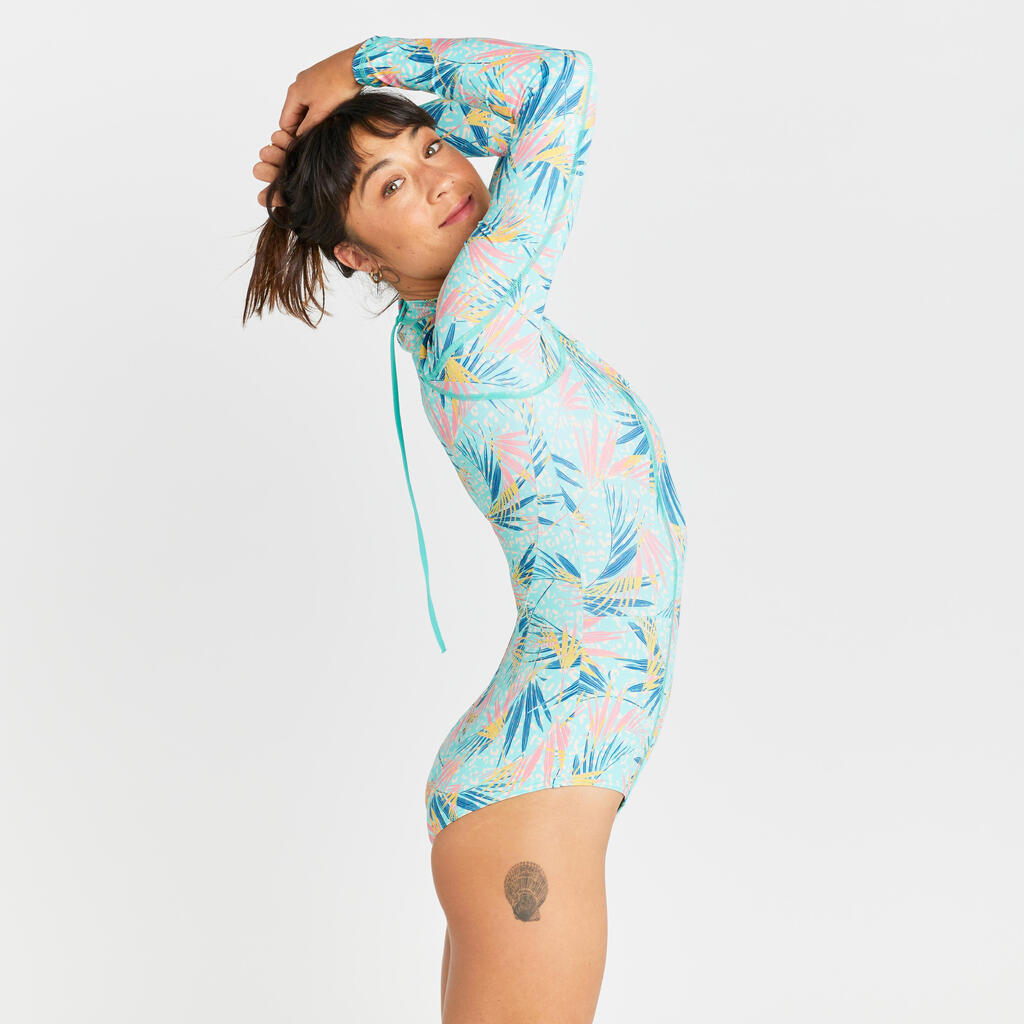 Women's 1-piece long sleeve swimsuit - Dani leoplant turquoise