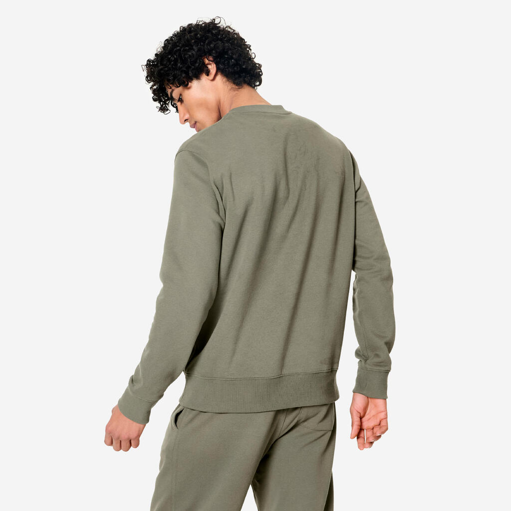 We've designed this sweatshirt with an ideal fit and a perfect drape that suits all body types. It gives you an unbeatable style: nothing's like a good basic that's simple and comfortable, that you love to wear and that makes you look great. Slip it over a T-shirt or under a jacket, this men's sweatshirt adapts to all your styles. Plus, its crew neck and brushed fleece component provide moderate warmth.