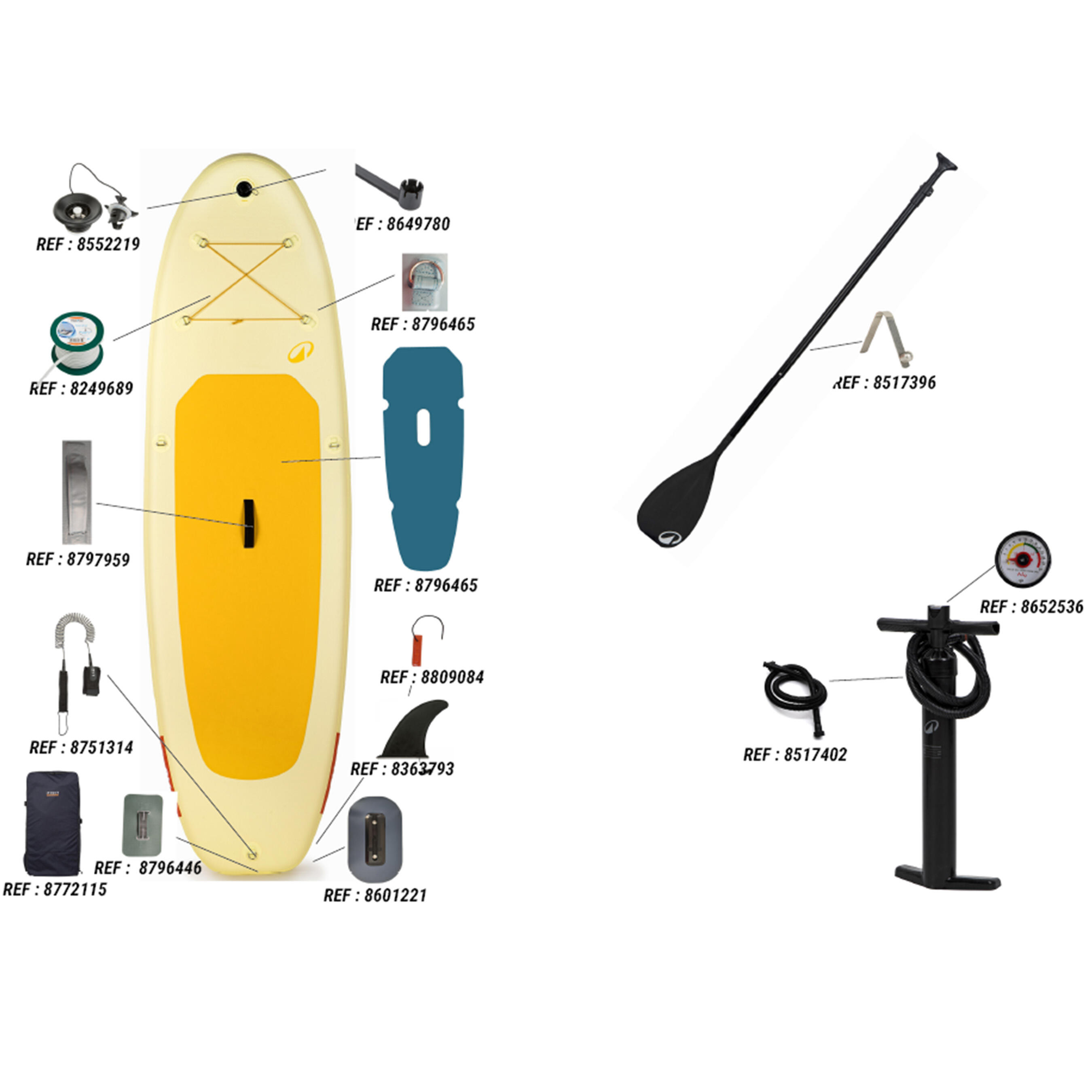 We have a stand up paddleboard repair kit under the reference 8512384 for repairing small, easily visible leaks.
